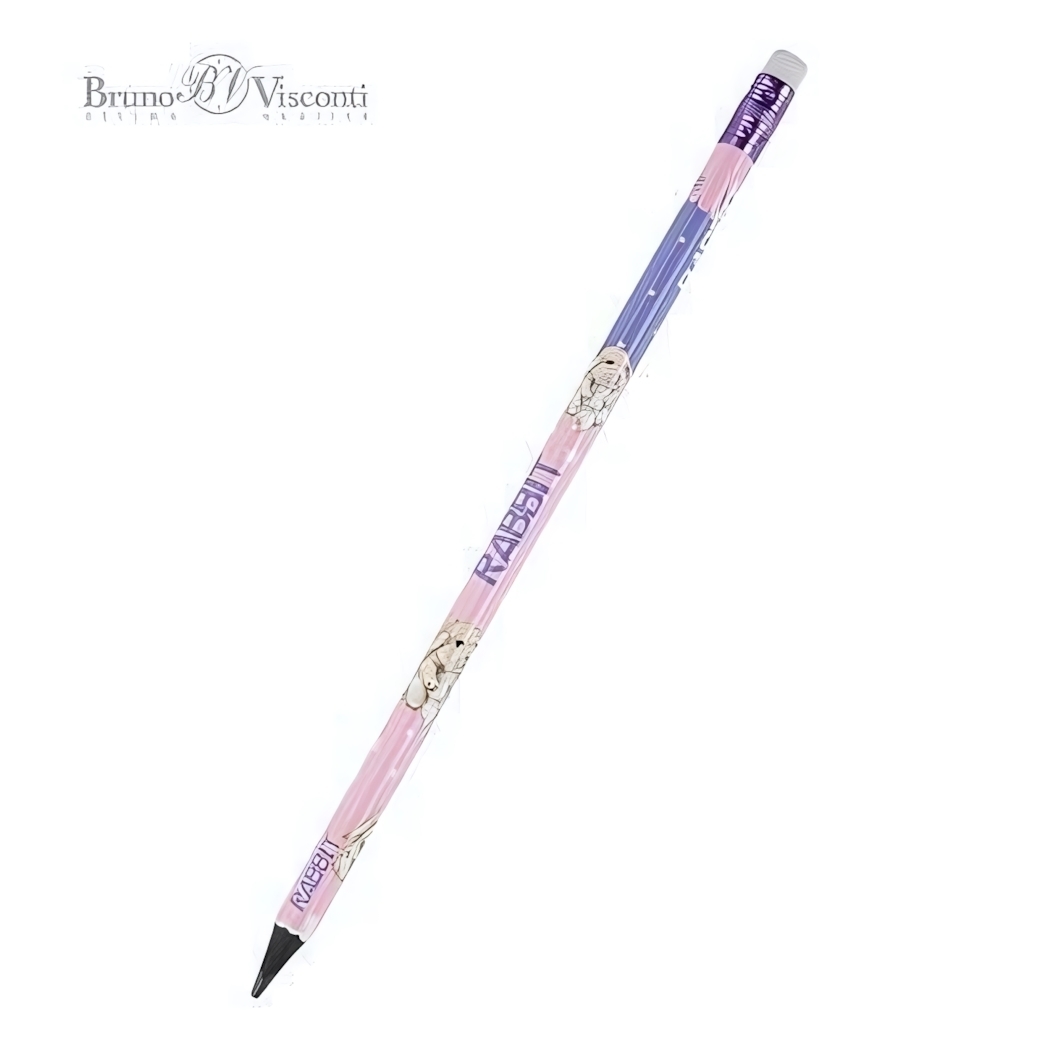 Грифель диаметром 3 мм идеально отцентрован, что исключает его ломкость при заточке и падении. Карандаш легко затачивается, а его плотный корпус не скатывается с поверхности стола, что делает его удобным в использовании. Яркие принты с изображением кроликов и надписью "RABBIT" добавляют индивидуальности и делают процесс рисования более увлекательным.