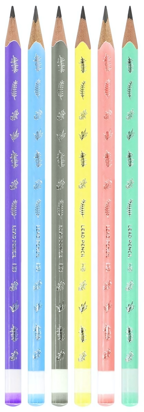 Карандаши поставляются в индивидуальном оформлении. Цвет корпуса (фиолетовый, голубой, серый, желтый, розовый, мятный) и соответствующий дизайн определяются случайным образом. Вы получаете один карандаш в пастельном цвете из доступной коллекции. Деревянный корпус с трехгранным сечением обеспечивает удобный хват, а качественный грифель стандарта HB гарантирует четкие и аккуратные линии.