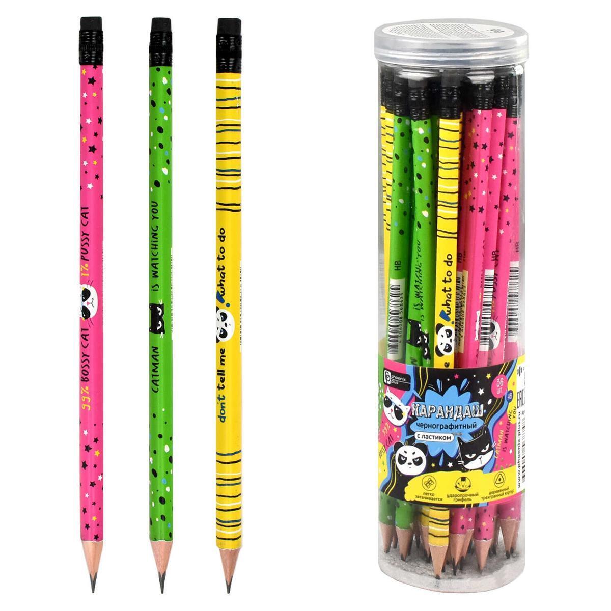Карандаш чернографитный с ластиком HB "Твой месседж", ассорти цветов, 1 шт