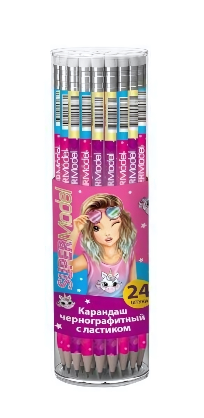 Карандаш чернографитный с ластиком "Super Model", 1 штука, с ярким принтом