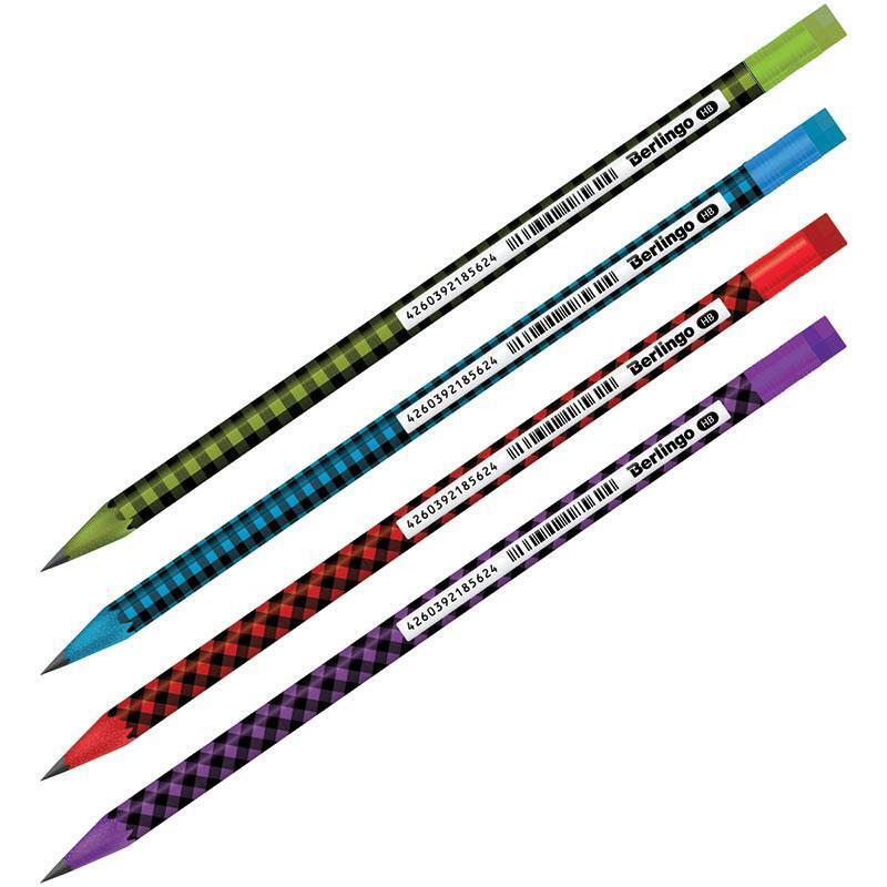 Карандаш чернографитный Berlingo "Squares", ударопрочный, с ластиком, заточенный, ассорти цветов