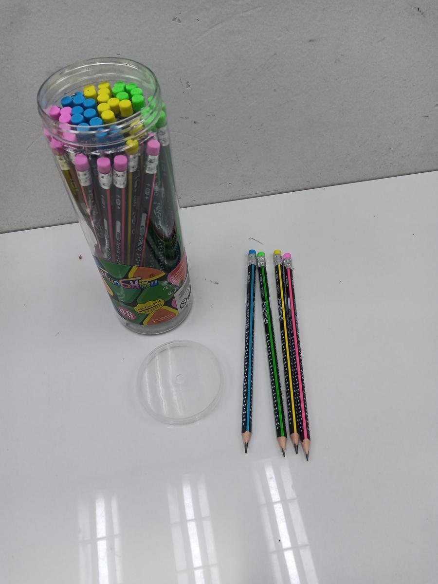 Карандаши представлены в четырех цветовых решениях, имеют стандартную длину и оснащены качественным ластиком на торце.