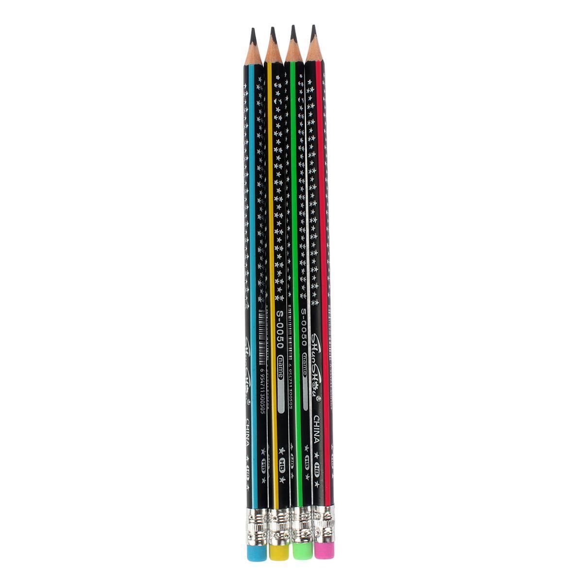 Карандаш чернографитный 'Star' трехгранный с ластиком, 4 цвета