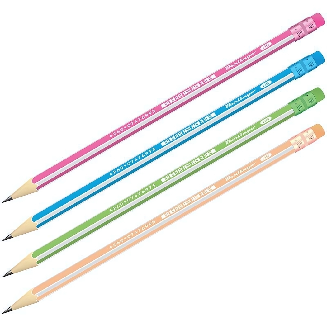 Карандаш чернографитный Berlingo "Triangle Ultra" HB с ластиком, заточенный, ассорти цветов