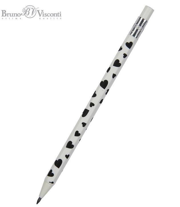 Выбирая этот карандаш, вы получаете не просто пишущий инструмент, а стильный аксессуар, который подчеркнет вашу индивидуальность. Дизайн с сердечками добавит позитива в рабочие будни, а практичная конструкция избавит от необходимости постоянно искать точилку.