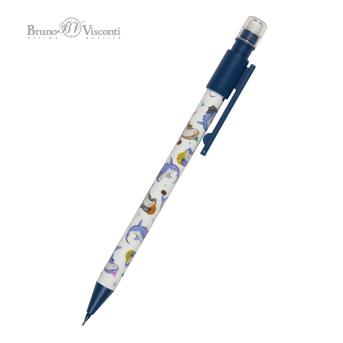 Механический карандаш "HappyGraphix. Акулы" 0,7 мм с ластиком, ABS-пластик, клипса для крепления