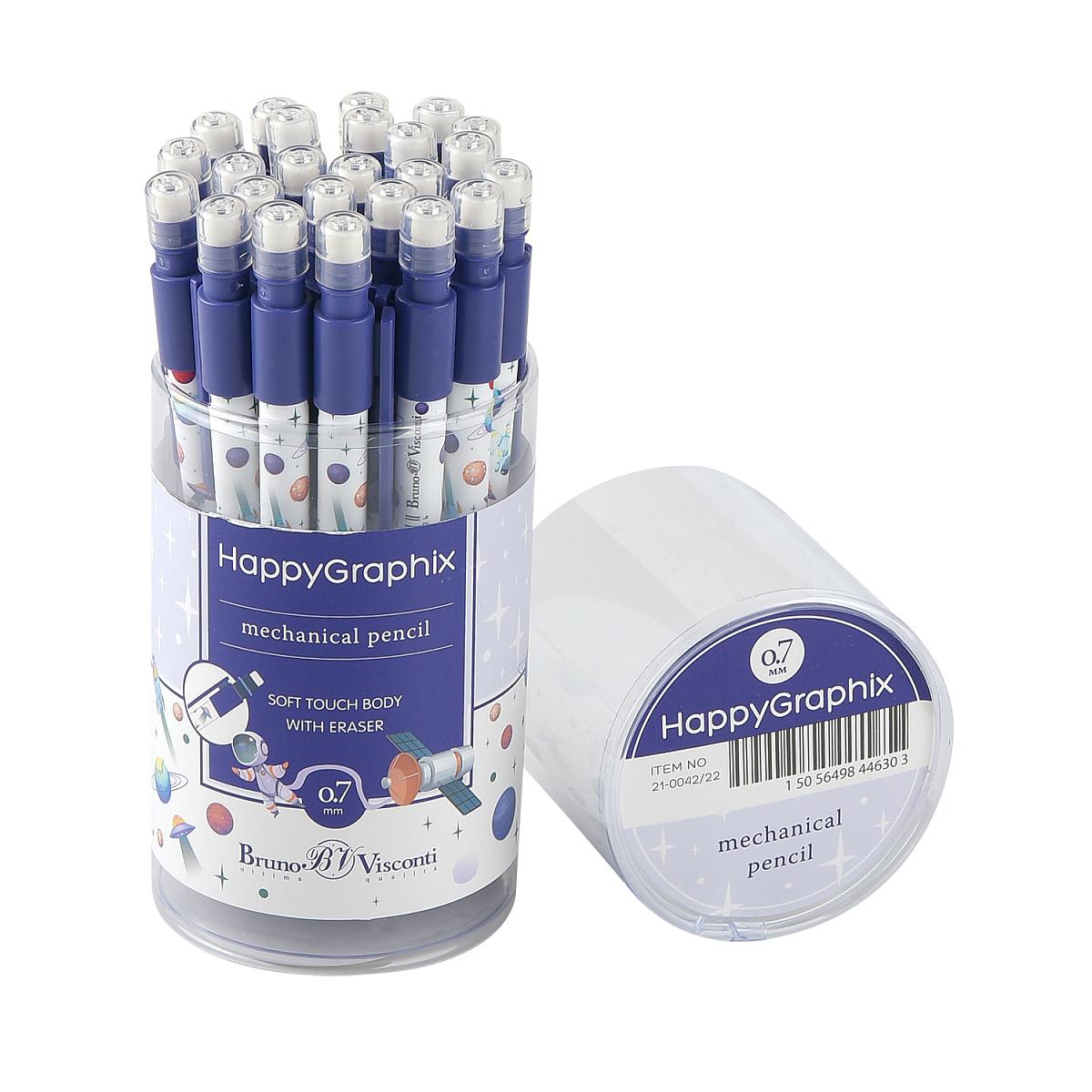 Карандаш механический с ластиком «HappyGraphix. Космос», 0,7 мм, ABS-пластик, грифель HB, клип-зажим