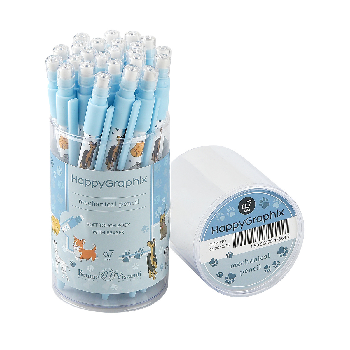 Стильный дизайн с изображением собак из серии HappyGraphix делает этот карандаш не просто письменной принадлежностью, но и приятным аксессуаром, который выделит вашу индивидуальность. Все элементы конструкции продуманы до мелочей: от удобного нажатия механизма до защиты ластика от загрязнений.