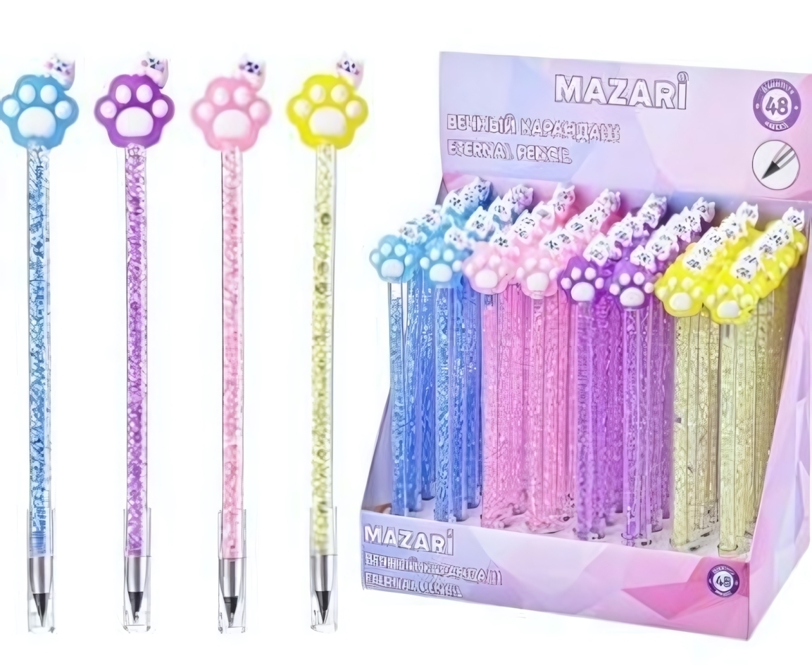 Вечный карандаш 'Лапки' создан для тех, кто ценит не только функциональность, но и стиль. Прозрачный корпус с мерцающими кристаллами внутри превращает обычное письмо в особое удовольствие.