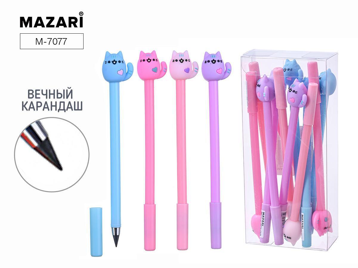 Вечный карандаш Mazari "Котики", ассорти цветов, милые котята, надежный, для рисования и письма