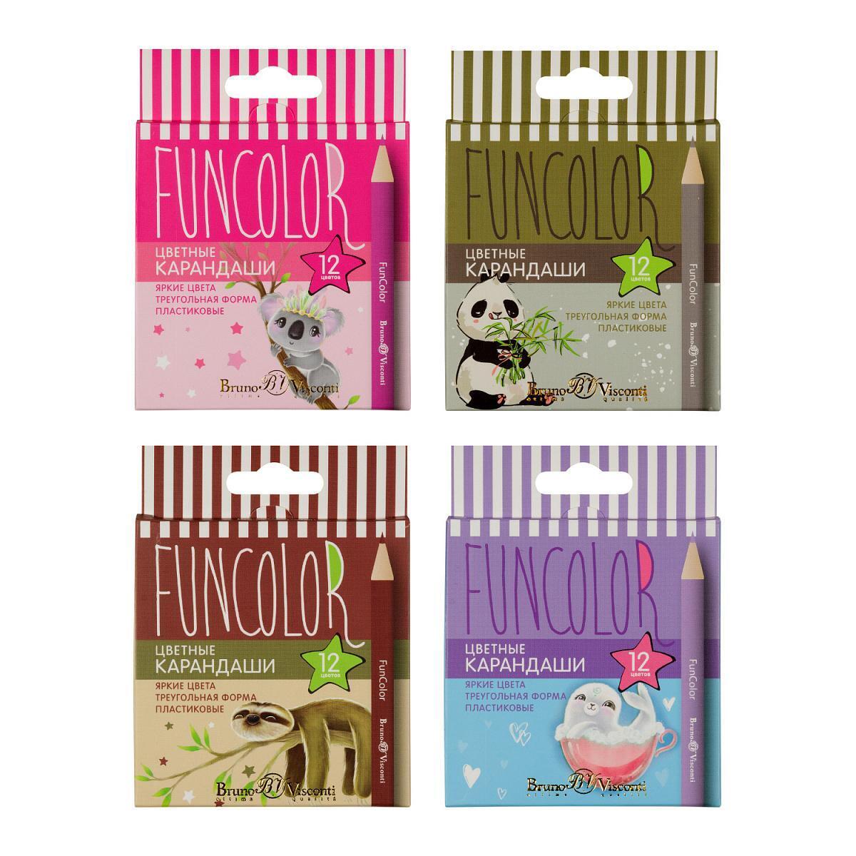 Карандаши цветные "FunColor" 12 цветов, укороченные, пластиковые, трехгранные для детей