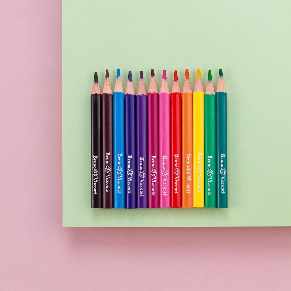 Каждый карандаш имеет маркировку бренда Bruno Visconti и заточенную готовность к использованию. Пластиковая упаковка с закругленными углами безопасна для детей. Совместимы со стандартными точилками для цветных карандашей.