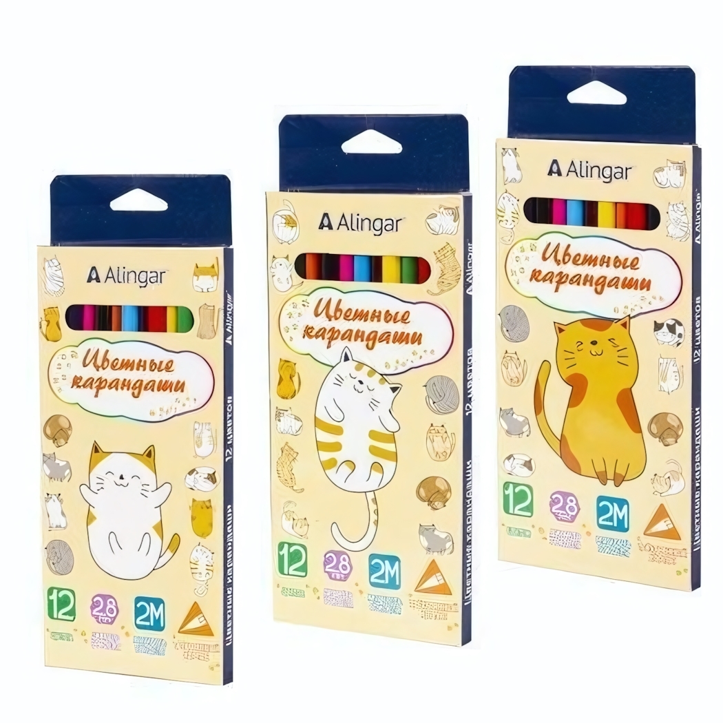 Прочный деревянный корпус защищает грифель от поломок и легко затачивается обычной точилкой. Светло-желтая упаковка с очаровательными котятами порадует глаз и станет отличным подарком для юных художников.