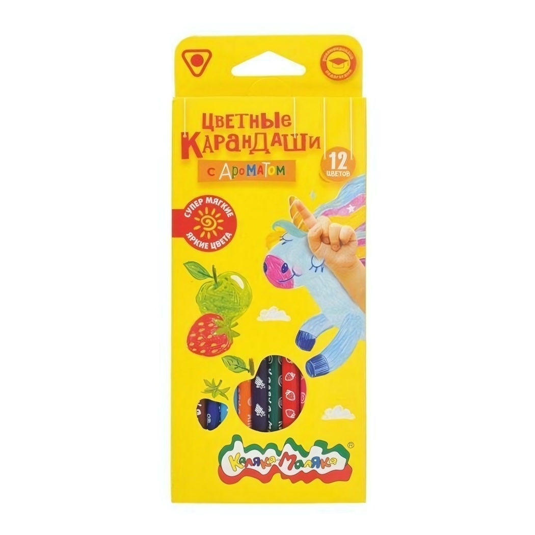 Карандаши цветные ароматизированные "Каляка-Маляка", 12 цветов, трехгранные, супер мягкие, яркие цвета