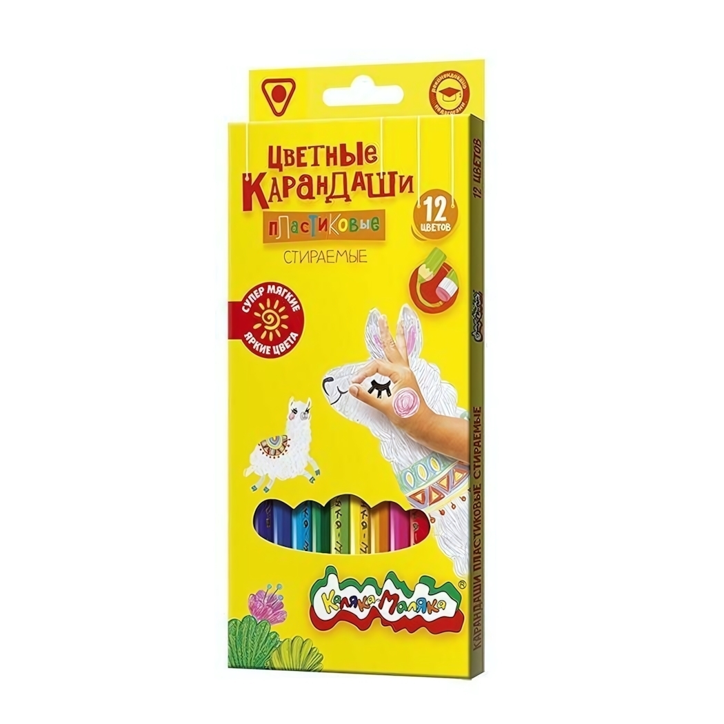 Карандаши цветные стираемые "Каляка-Маляка", 12 цветов, трехгранные, пластиковые