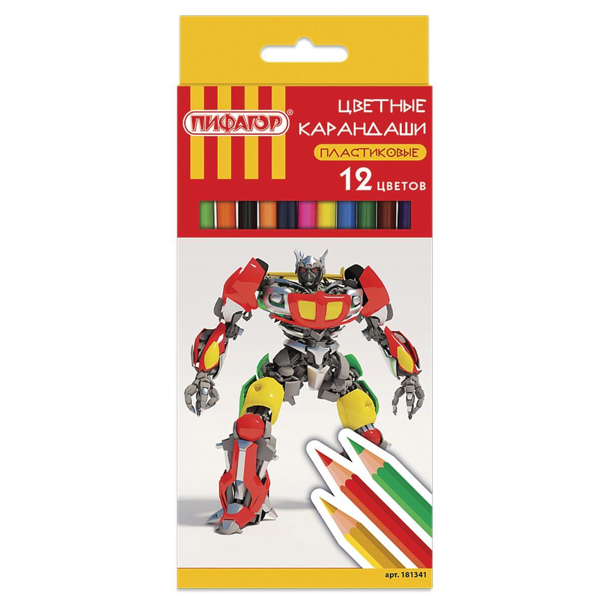 Карандаши цветные пластиковые "Боевой робот", 12 цветов, заточенные, для творчества