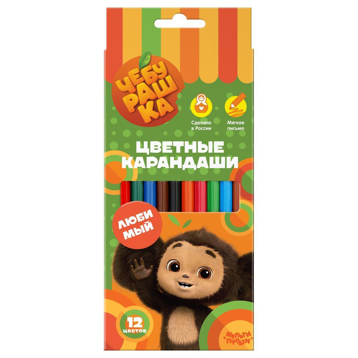 Цветные карандаши 'Чебурашка', 12 цветов, мягкий грифель, дерево