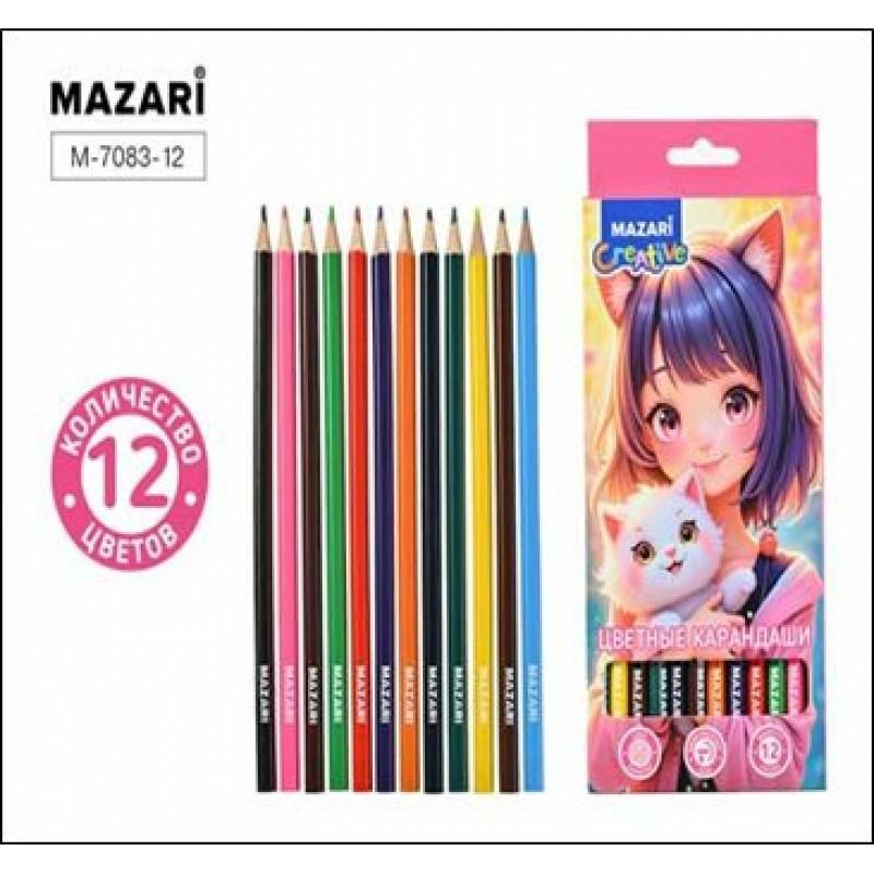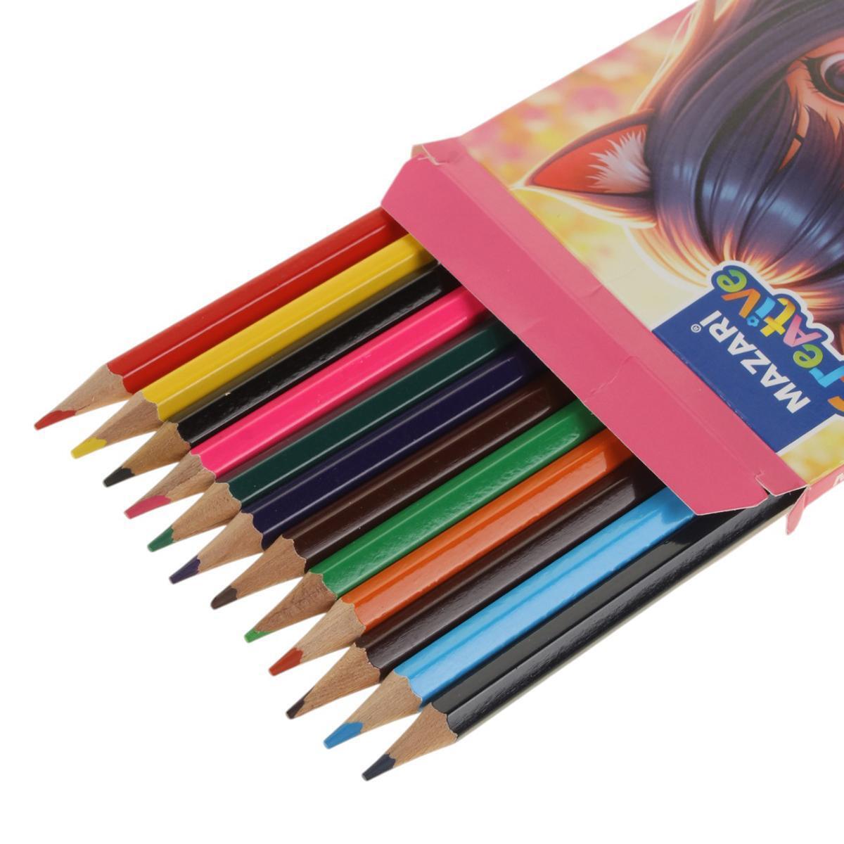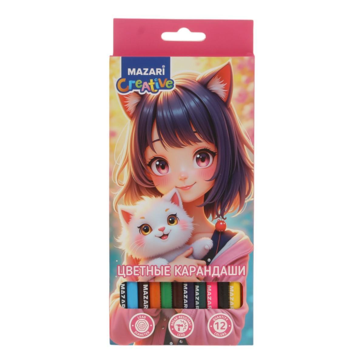 Карандаши цветные "Девочка Аниме", 12 цветов, шестигранные, грифель 2.65 мм, дерево, картонная коробка