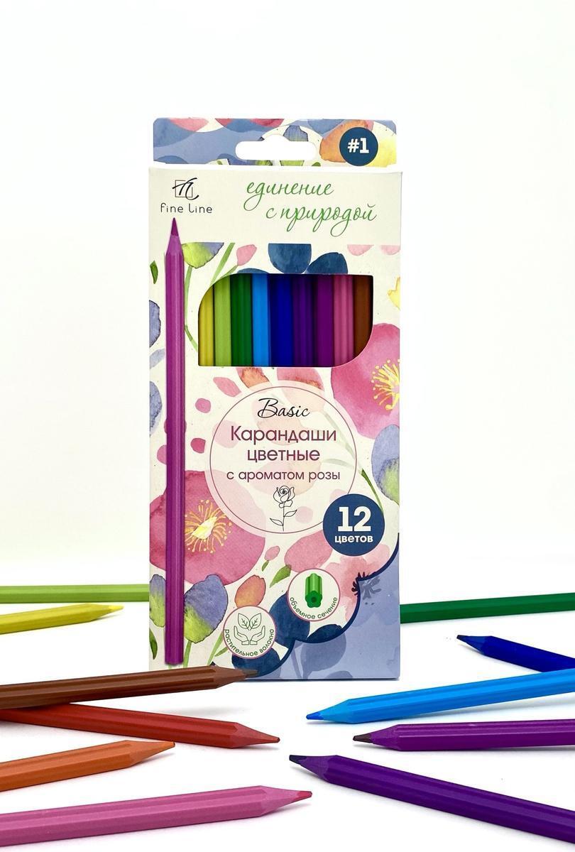 Карандаши цветные 12 цветов «Fine Line Basic», аромат розы, экокорпус из растительного волокна