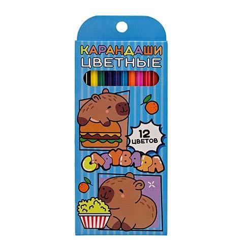 Карандаши цветные "Капибара" 12 цветов, 17,7 см, пластиковый шестигранный корпус, безопасные и легко затачиваются