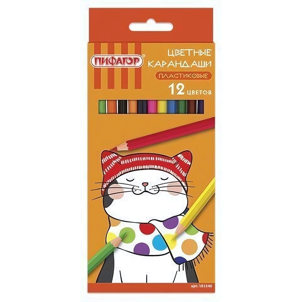 Карандаши цветные «Котик» 12 цветов, пластиковые, шестигранные, заточенные, безопасные для детей