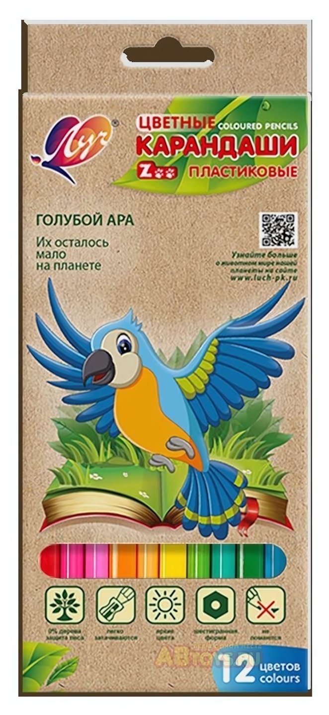 Цветные карандаши шестигранные 'ZOO' 12 цветов, пластик, для детского творчества