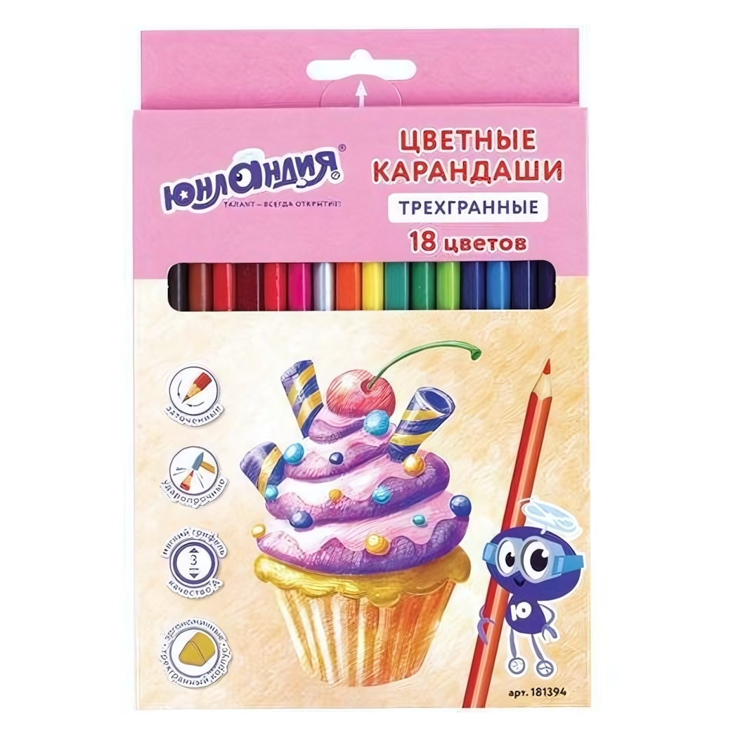 Размеры карандашей идеально подходят для детских рук, а треугранная форма предотвращает скатывание с поверхности. Упаковка выполнена в ярком дизайне с изображением мороженого, что делает набор привлекательным для детей. Карандаши легко заточить, а их яркие цвета не оставят равнодушными ни одного маленького художника.
