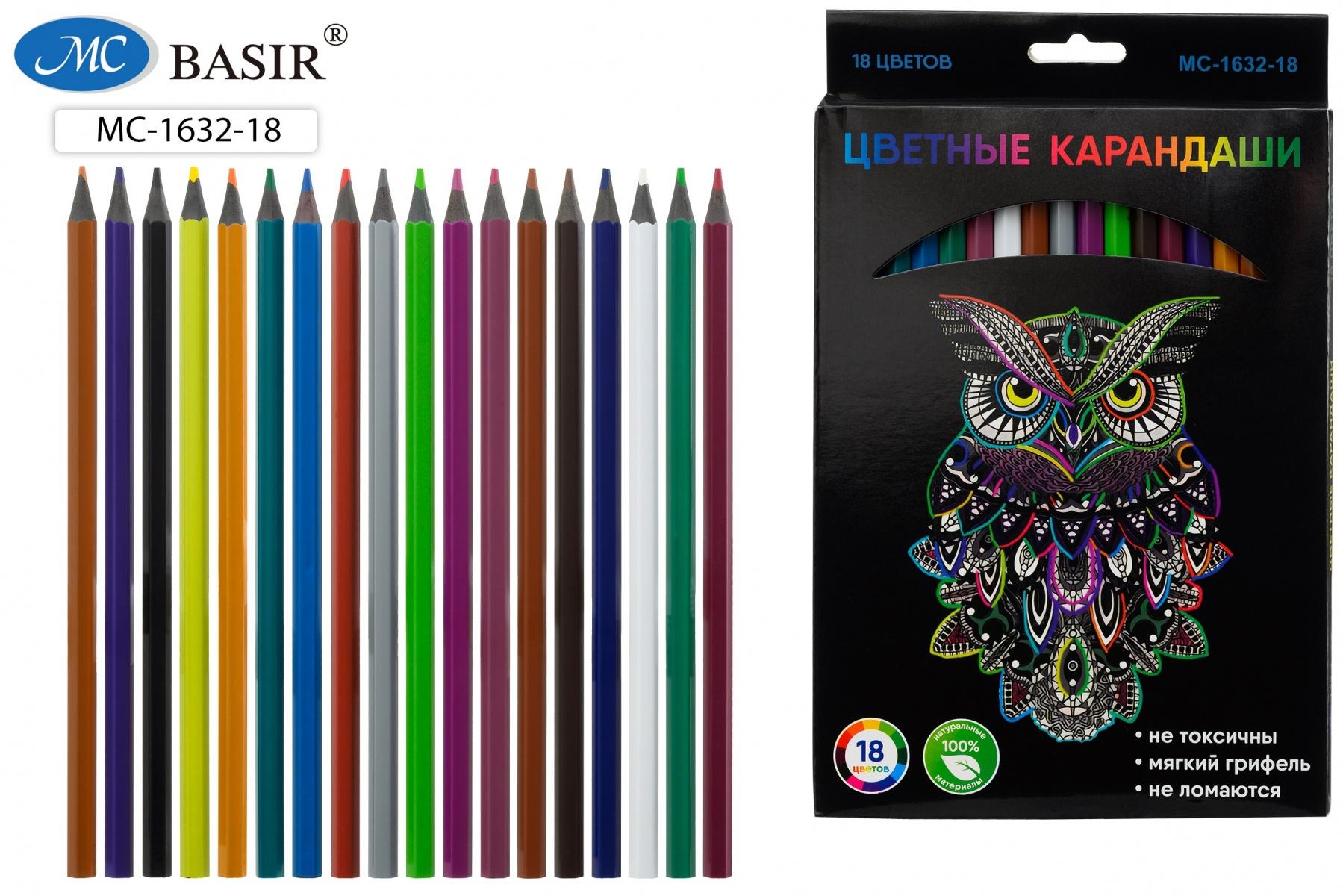 Набор карандашей цветных "Сова", 18 цветов, черный пластик, Basir