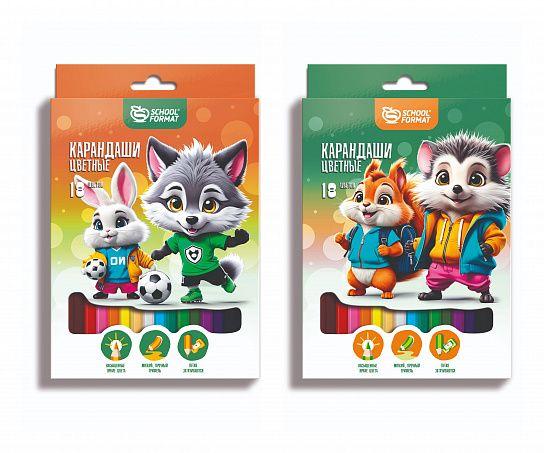 Цветные карандаши 'Яркие зверята', 18 цветов, мягкий грифель, деревянный корпус