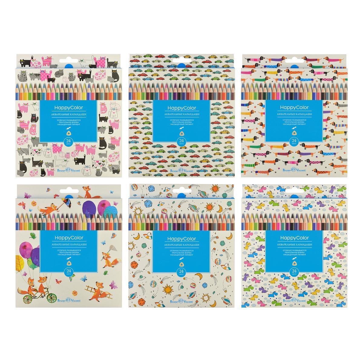 Карандаши акварельные 'HappyColor' 24 цв., мягкий грифель, размываются водой