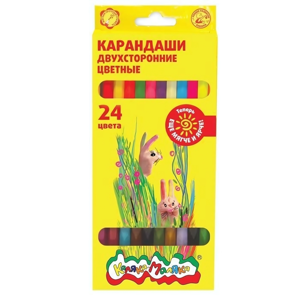 Карандаши двухсторонние 'Каляка-маляка', 24 цвета, мягкий грифель, дерево