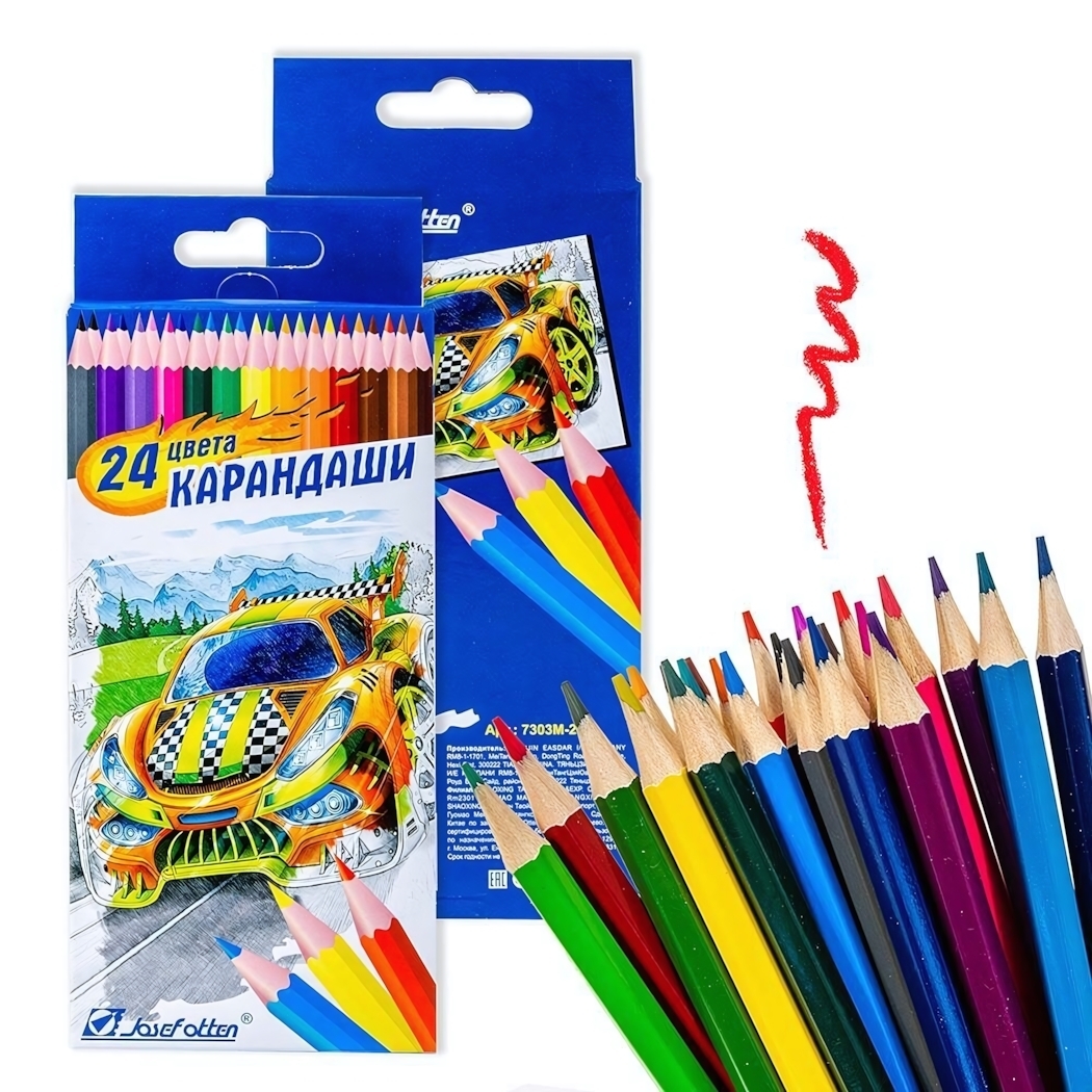 Набор из 24 насыщенных карандашей с прочным деревянным корпусом создан специально для юных художников. Шестигранная форма предотвращает скатывание со стола, а специальная обработка поверхности защищает от сколов при падении.