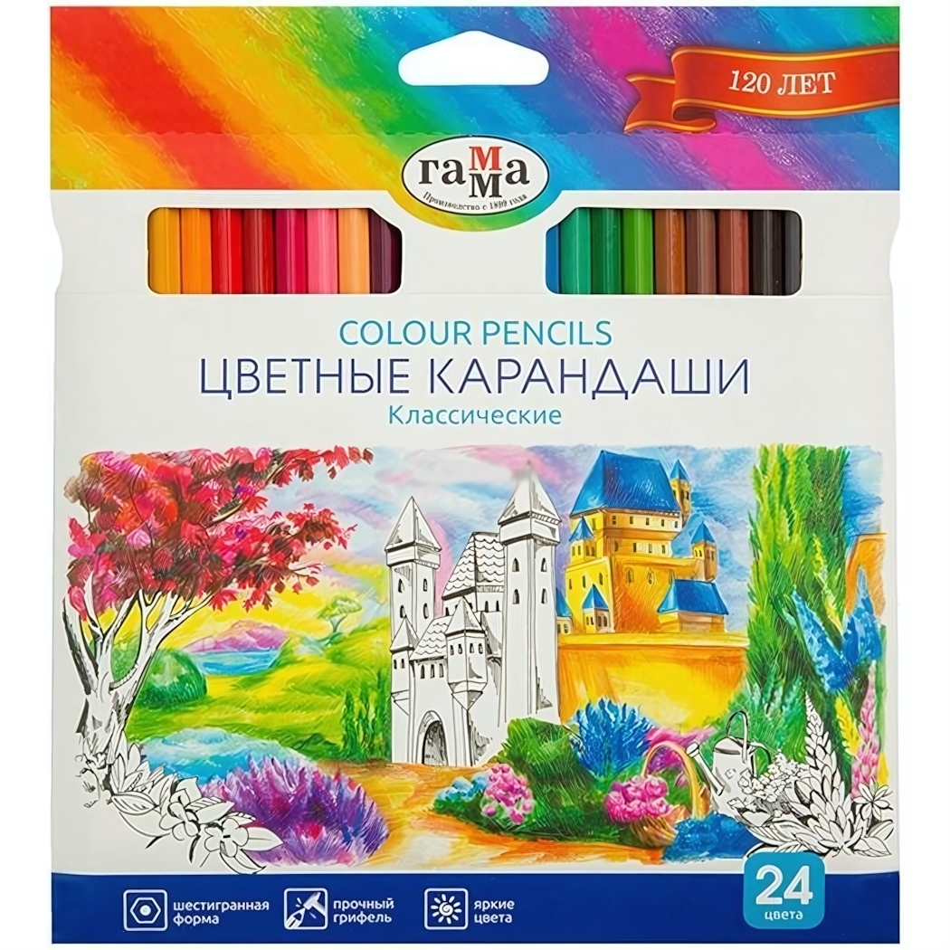 Цветные карандаши ГАММА серии «Классическая» — это идеальный выбор для детей, которые стремятся выразить свои творческие идеи. С набором из 24 ярких и насыщенных цветов ваш ребенок сможет создавать удивительные произведения искусства, не прилагая усилий. Каждый карандаш имеет проклеенный ударопрочный грифель диаметром 2,9 мм, который не крошится во время заточки и не ломается даже при падении, что делает их надежными в использовании.