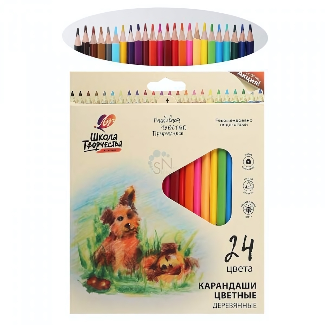 Цветные карандаши 'Школа Творчества', 24 цвета, трехгранные, деревянные, мягкий грифель 4М