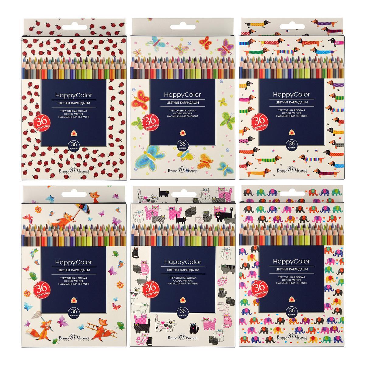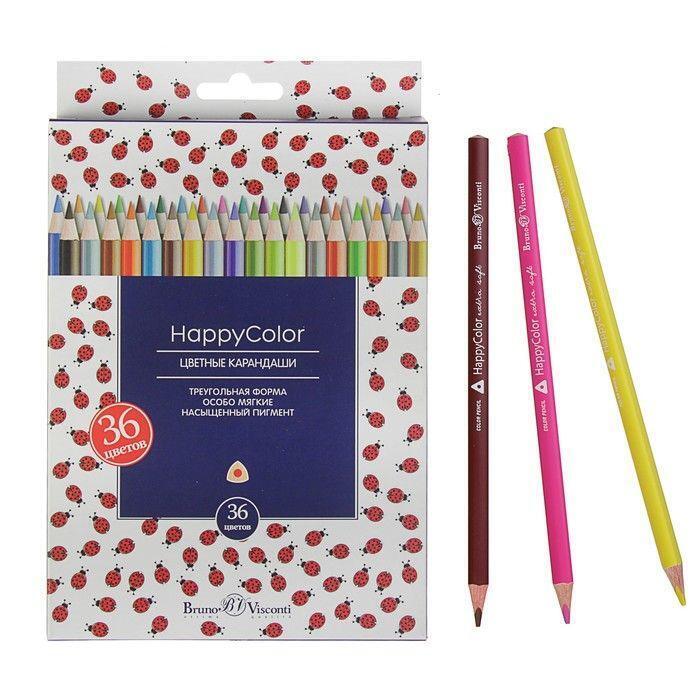 Карандаши цветные Bruno Visconti "HappyColor", 36 цветов, мягкие, насыщенный пигмент