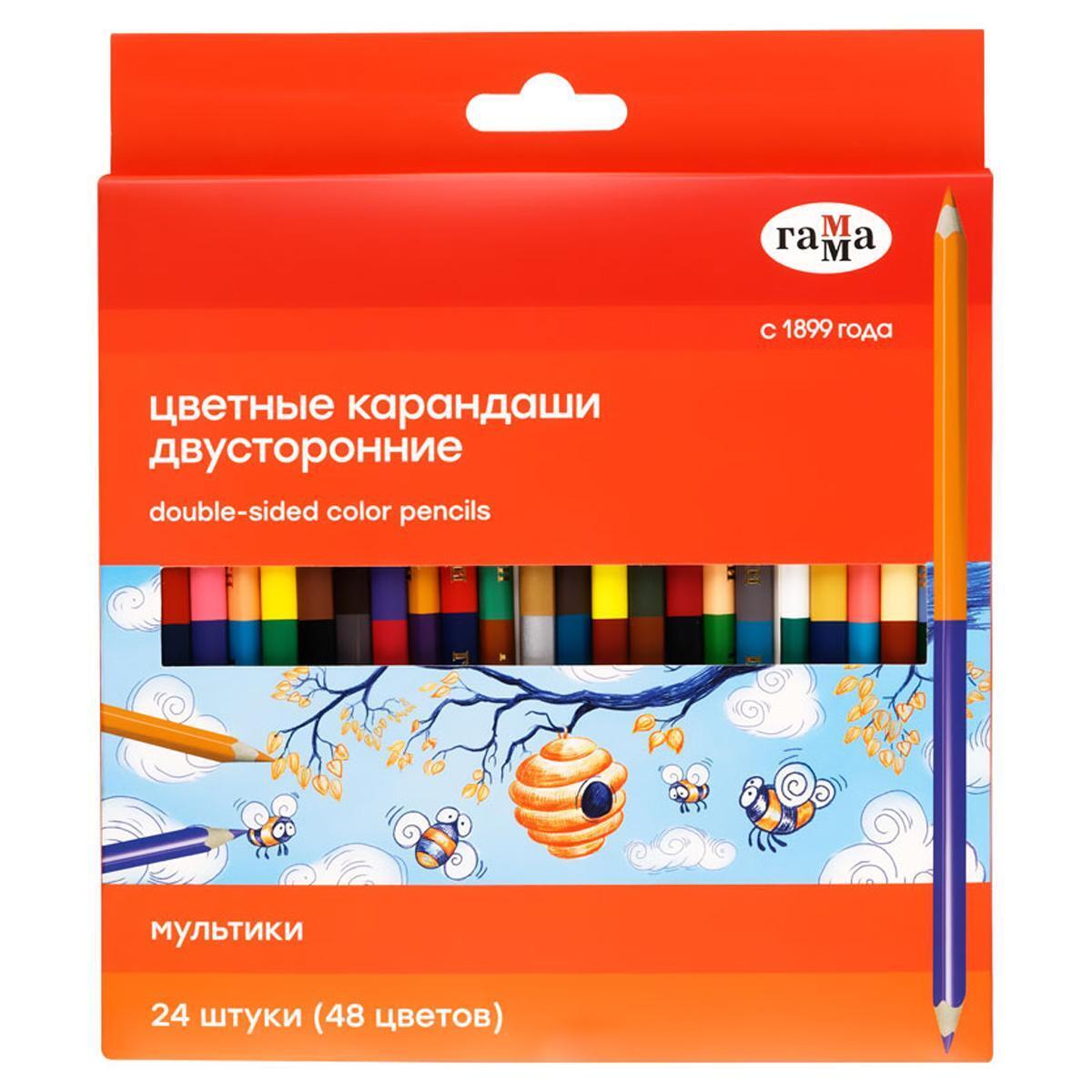 Карандаши цветные двусторонние 'Мультики', 24шт/48цв, диаметр 7мм