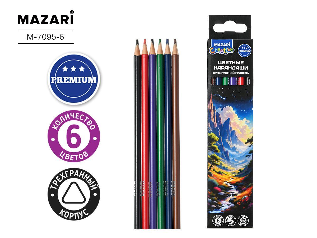 В наборе 6 ярких оттенков: черный, красный, зеленый, синий, коричневый и фиолетовый. Упакованы в картонную коробку с европодвесом, что удобно для хранения и размещения на витрине. Отгружается один набор карандашей.