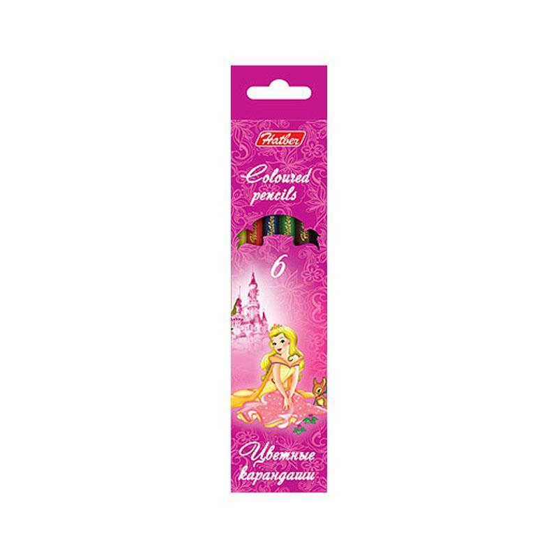 Цветные карандаши 6 цветов, "Принцессы на розовом", в картонной коробке