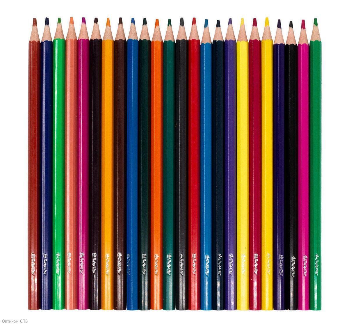 В картонной коробке с европодвесом вы найдете полный набор из 24 цветных карандашей различных оттенков, готовых воплотить любые ваши идеи.