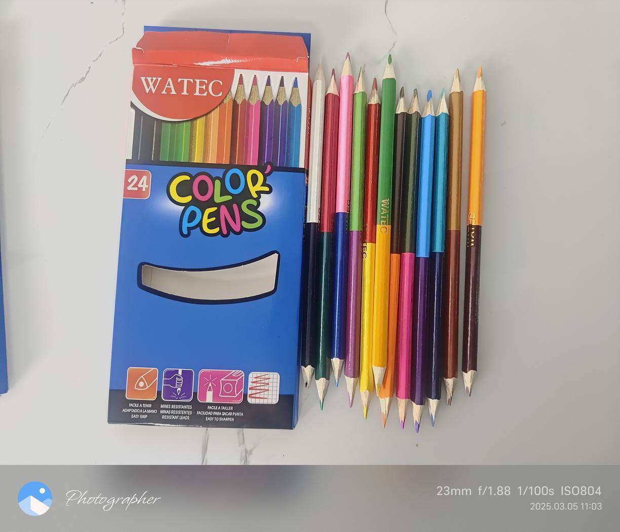 Карандаши цветные двусторонние 'WATEC', 24 цвета/12 шт, трехгранные, дерево
