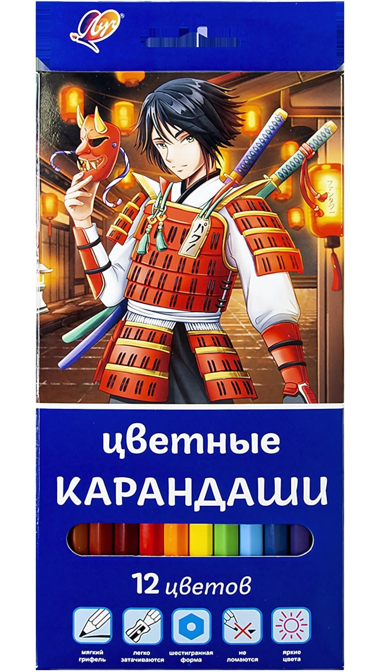Карандаши цветные "Аниме", 12 цветов, шестигранные, мягкий грифель, яркие
