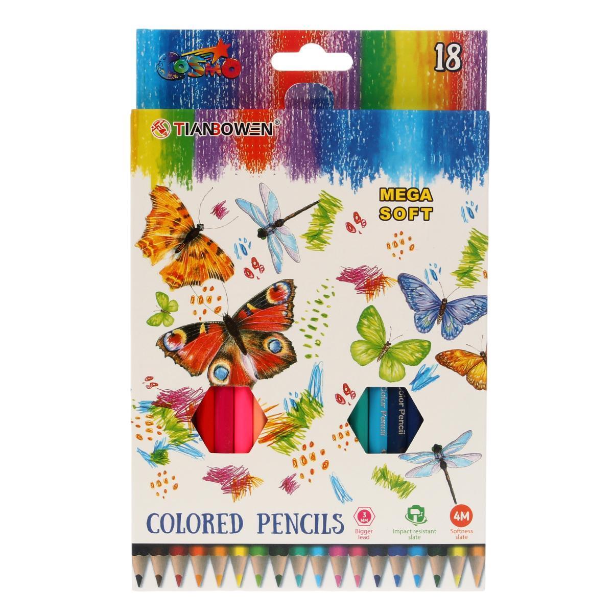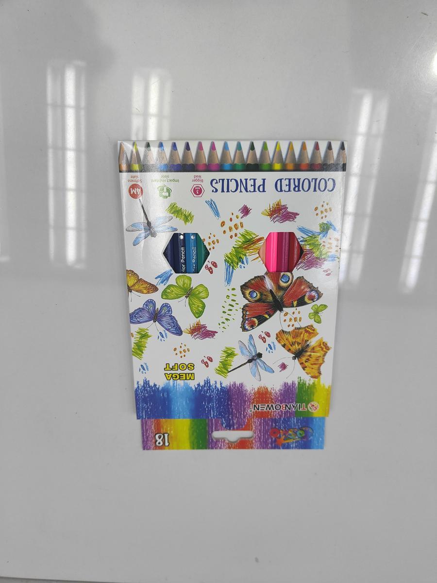 Шестигранная форма сечения корпуса позволяет карандашу не скатываться с поверхности стола, что особенно удобно во время занятий рисованием. Набор состоит из 18 ярких цветов, что дает возможность детям экспериментировать с оттенками и создавать уникальные цветовые комбинации. Карандаши поставляются в картонной упаковке с европодвесом, что делает их удобными для хранения и транспортировки.