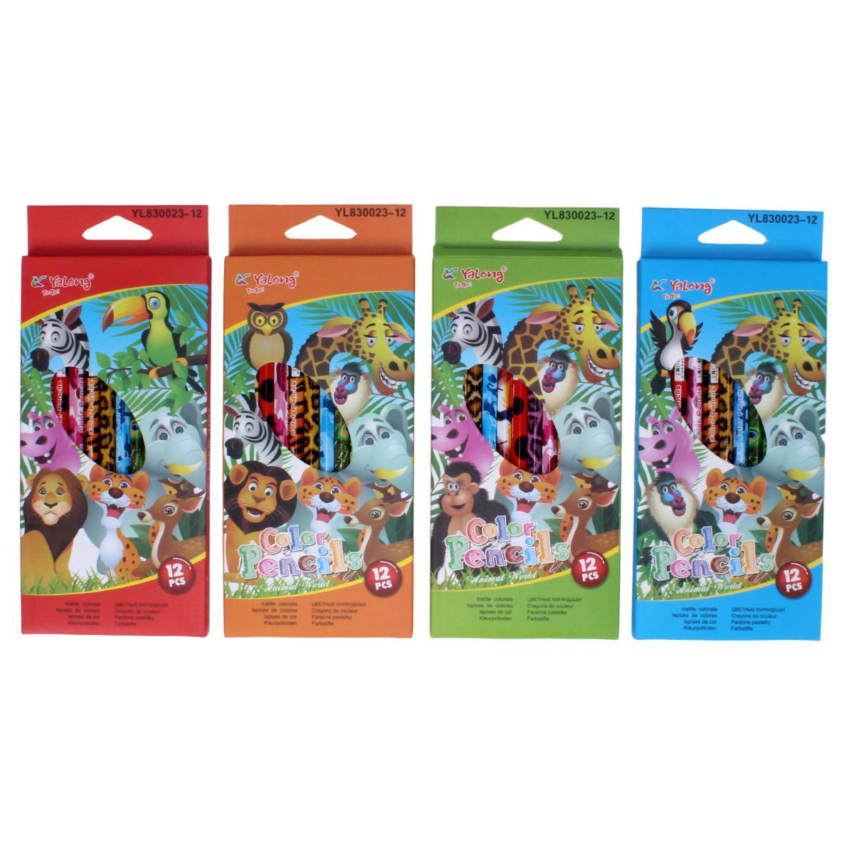 Карандаши цветные «Зоопарк» 12 цветов, 6-гранные, животные принты, картонная коробка