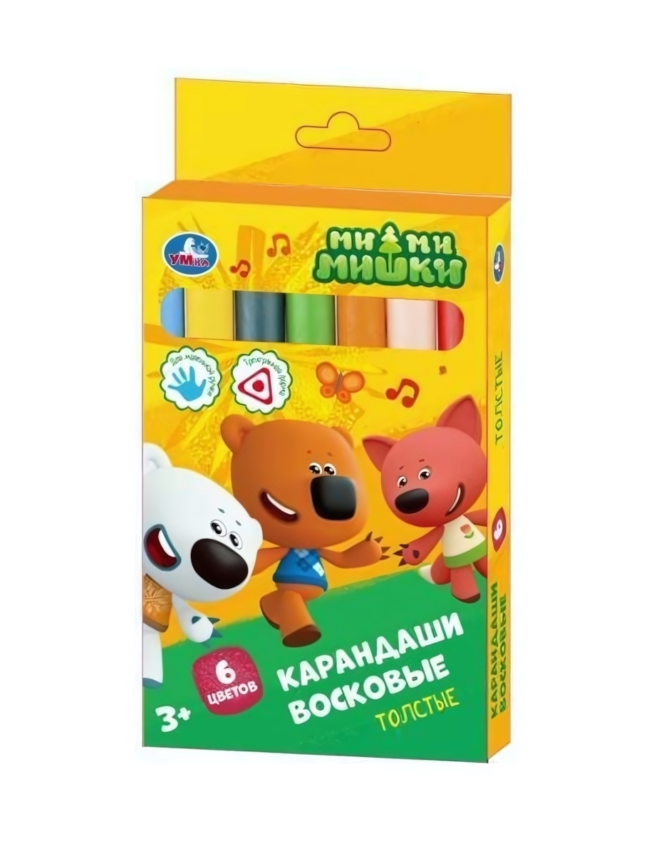 Восковые карандаши «Ми-ми-мишки» 6 цветов, толстые трехгранные, для детей 3+, безопасные
