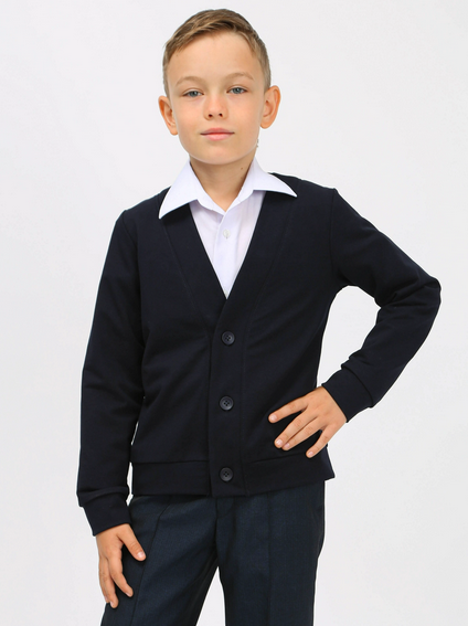 Создайте безупречный школьный или праздничный образ с кардиганом 'Гарри-1'. Классический крой и благородный темно-синий цвет делают его идеальной базой для любого делового гардероба.