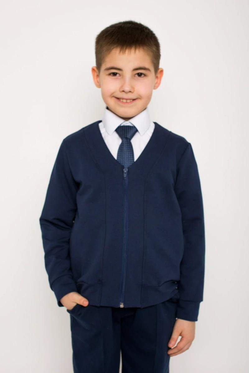 Представляем вашему вниманию кардиган 'Игнат-1', который станет идеальным выбором для вашего мальчика. Этот стильный и удобный кардиган выполнен в тёмно-синем цвете, что делает его универсальным элементом гардероба. Он отлично подходит как для школьной формы, так и для повседневной носки. V-образный вырез горловины и застёжка на молнии обеспечивают комфорт и легкость в использовании.