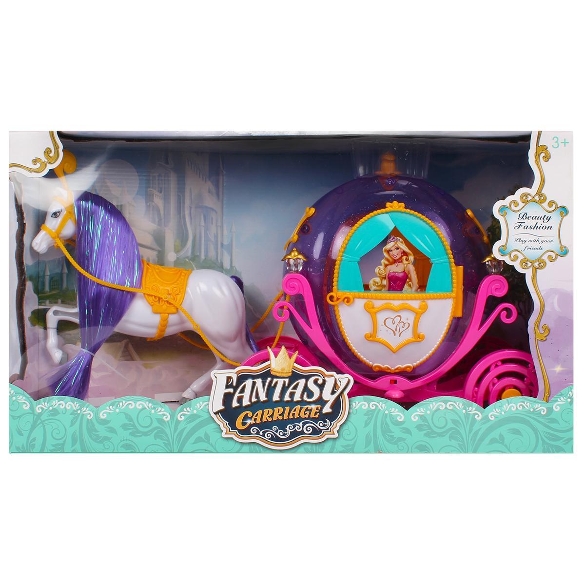 Практические детали: игрушка включает карету и фигурку лошади, выполнены из безопасных пластмасс, легко моются влажной тканью. Подходит для активных игр, сюжетных спектаклей и сказочных приключений, развивая воображение и мелкую моторику.