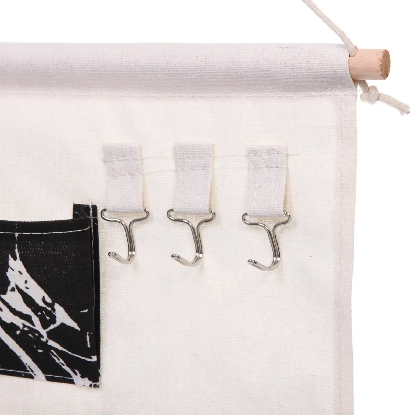 Карман предназначен для хранения различных мелких предметов, таких как ключи, мелочи, аксессуары и другие необходимые вещи. Он легко крепится на стену с помощью деревянной перекладины и веревки, что позволяет сэкономить место и сделать ваш дом более организованным. Этот органайзер идеально подходит для использования в прихожей, ванной комнате или на кухне.