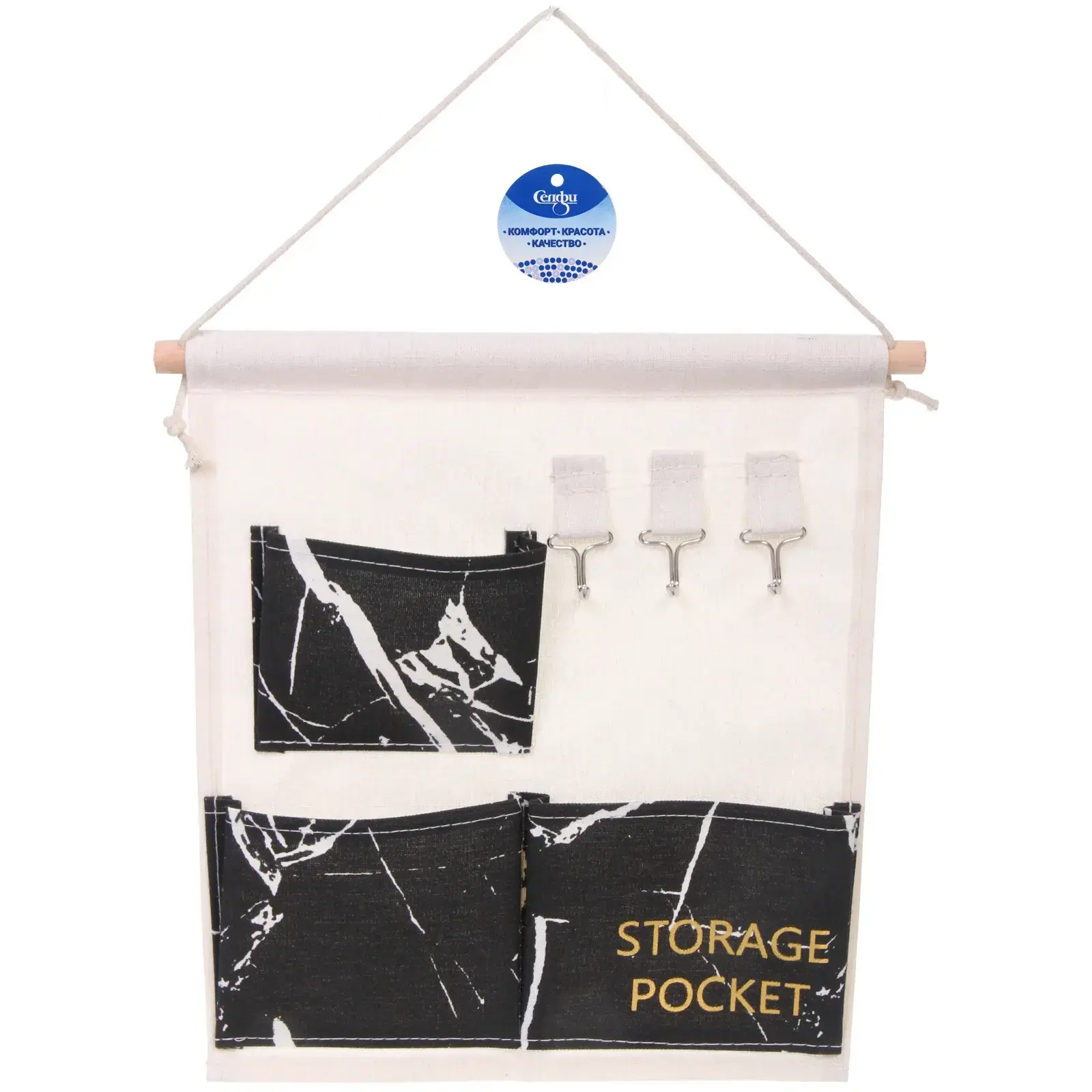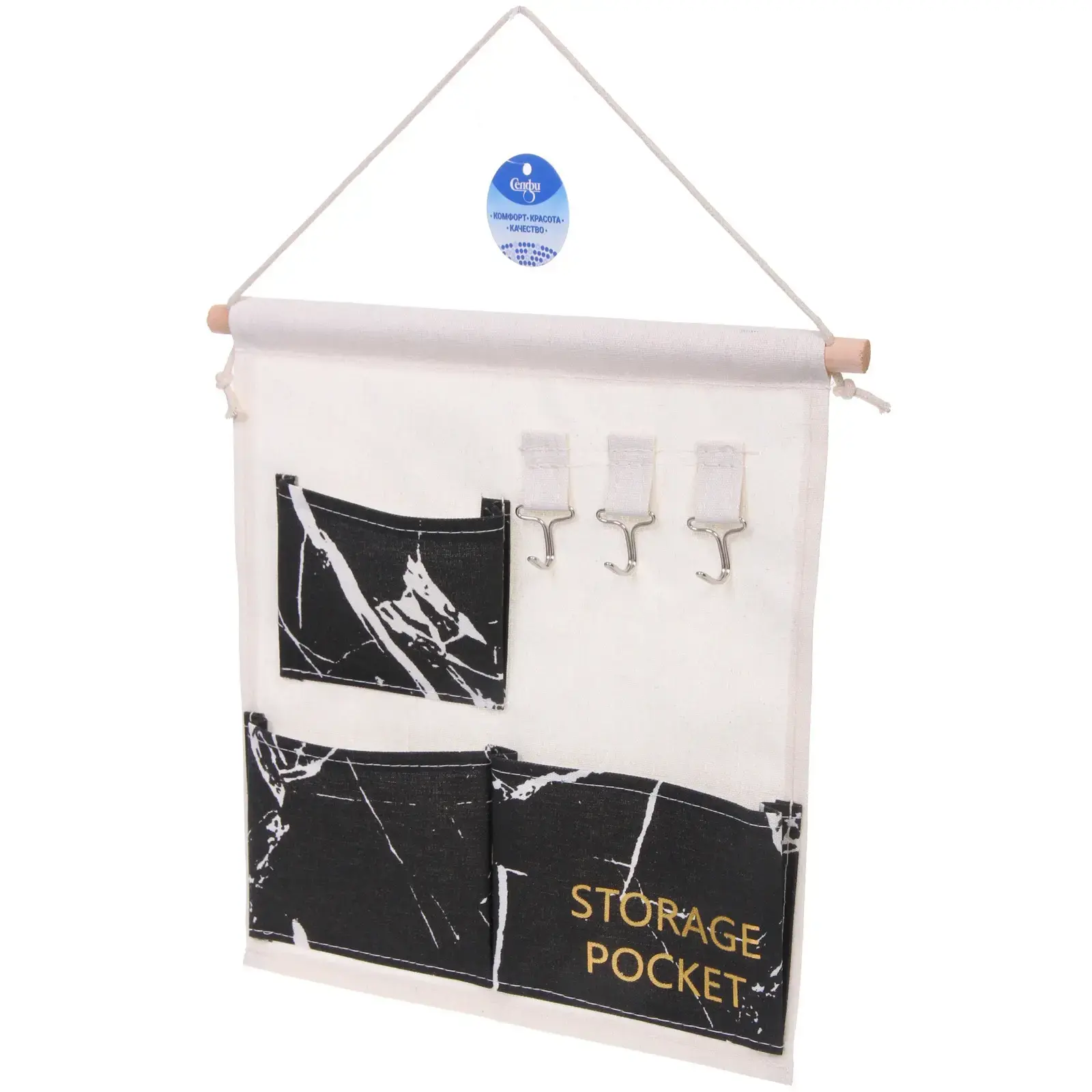Выбирая карман «ИДЕЯДОМА», вы получаете не только стильный элемент декора, но и практичное решение для хранения. Его три отделения позволяют удобно распределить вещи, а три металлических крючка обеспечивают дополнительное место для подвешивания. Изготовленный из качественного текстиля и дерева, этот органайзер отличается долговечностью и надежностью.