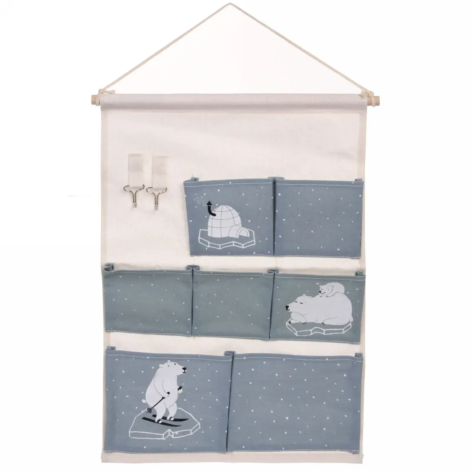 Настенный органайзер с очаровательным дизайном создан для тех, кто ценит удобство и уют. Семь просторных карманов вместят канцелярские принадлежности, игрушки, аксессуары или косметику, а милые иллюстрации с полярными медведями добавят тепла в интерьер.